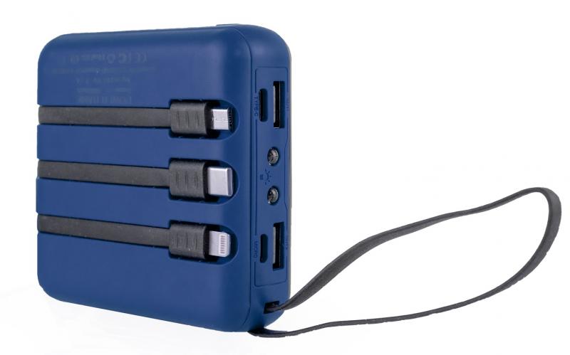 Powerbanka kompaktních rozměrů s kapacitu 10 000 mAh. Díky čtyřem zabudovaným výstupním kabelům s konektory USB micro, USB Type C, Lightning a USB se stane skvělým pomocníkem pro dobíjení vašich elektronických zařízení. Každý uživatel zajisté ocení dvě výkonné LED diody a poutko.