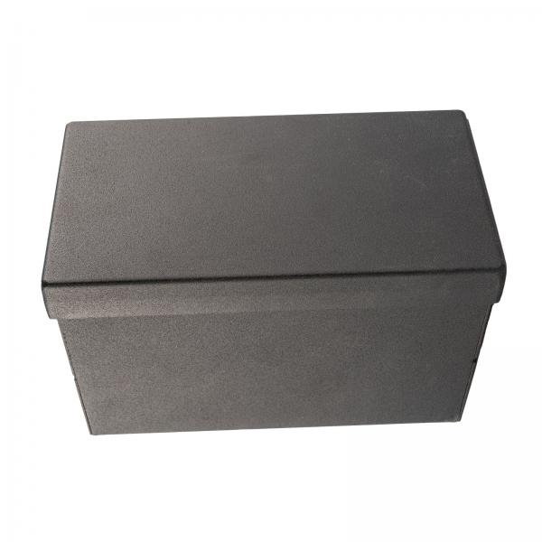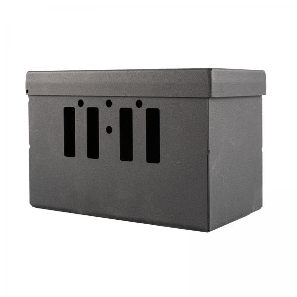 Ochranná kovová skříňka pro baterii 12V o vnitřních rozměrech 85*165*100 mm (d*š*h). Skříňka je nejlepší volbou pro ochranu baterie proti odcizení nebo vandalizmu. Kovová uzamykatelná skříňka na baterii 12V s možností kombinace s lanovým nebo visacím zámkem. Extrémně odolné provedení ze silného ocelového plechu s práškovým lakováním. Jedná se o českou precizní výrobu! Baterie není součástí ochranné kovové skříňky.
